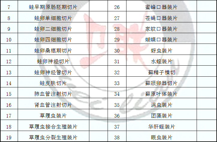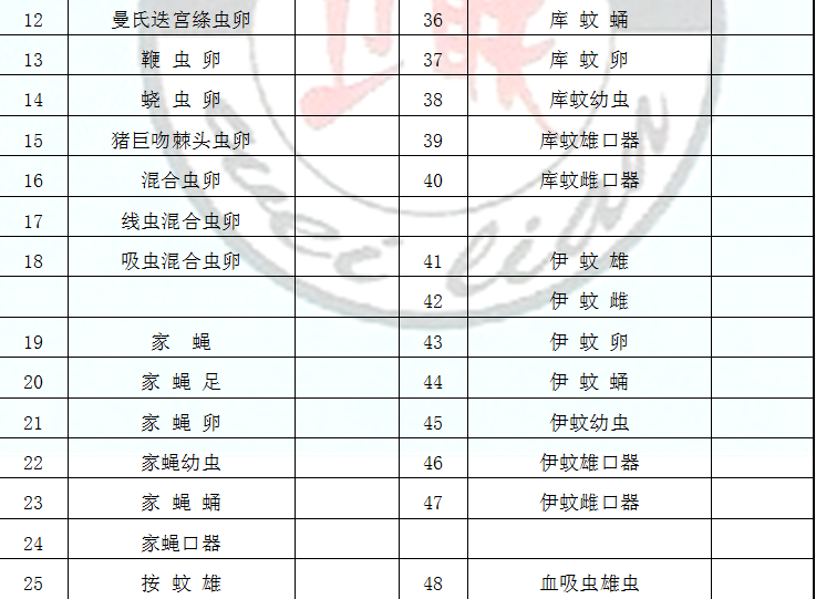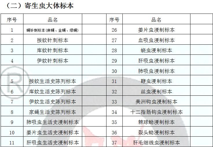 2 按蚊針刺標本   27 血吸蟲浸制標本