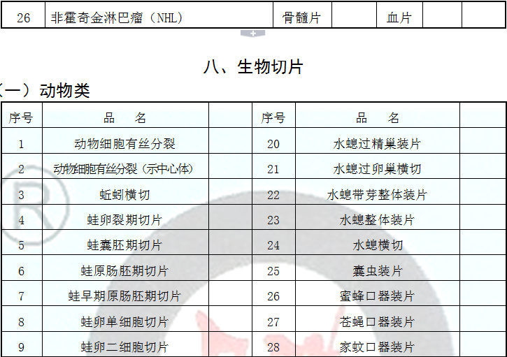 16 血吸蟲生活史浸制標本   42 米豬肉浸制標本
