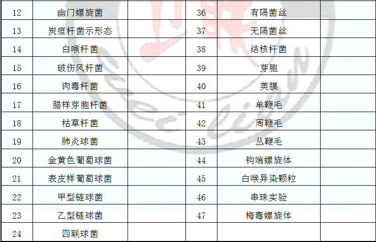21 表皮樣葡萄球菌 45 白喉異染顆粒